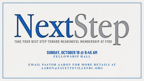 Would you like to make Fayetteville First Baptist Church your church home? Then we would like to invite you to attend our Next Step Class which is your next step towards church membership.