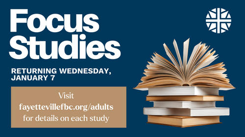 Focus Studies are short-term, topical Bible Studies that will help you grow in your walk with Jesus. Join us every Wednesday morning or evening to connect with the Word and other believers.
